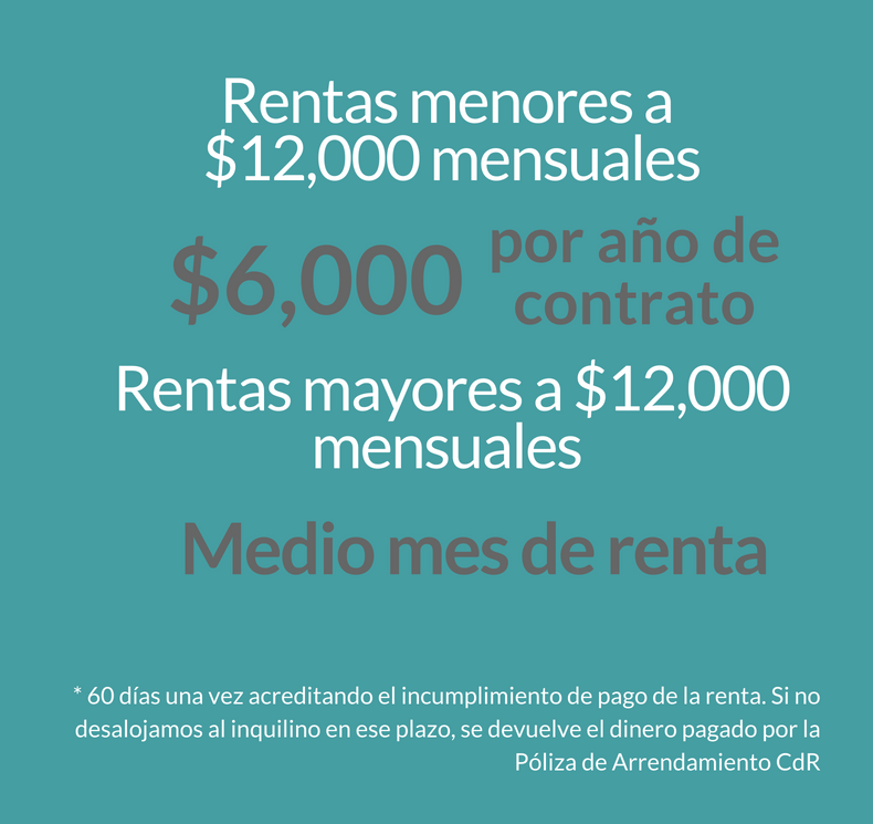 Club de Rentas le ofrece la única póliza en el mercado que protege su contrato de renta desde su inicio, lo cubre de gastos legales y garantiza la recuperación de su inmueble en menos de 60 días en caso de incumplimiento. Nuestro proceso incluye el perfilamiento y selección de los mejores inquilinos, desarrollo de contrato a la medida y acompañamiento a su firma, así como el monitoreo del pago oportuno de su renta y el reporte a Buró de Crédito en caso de incumplimiento.